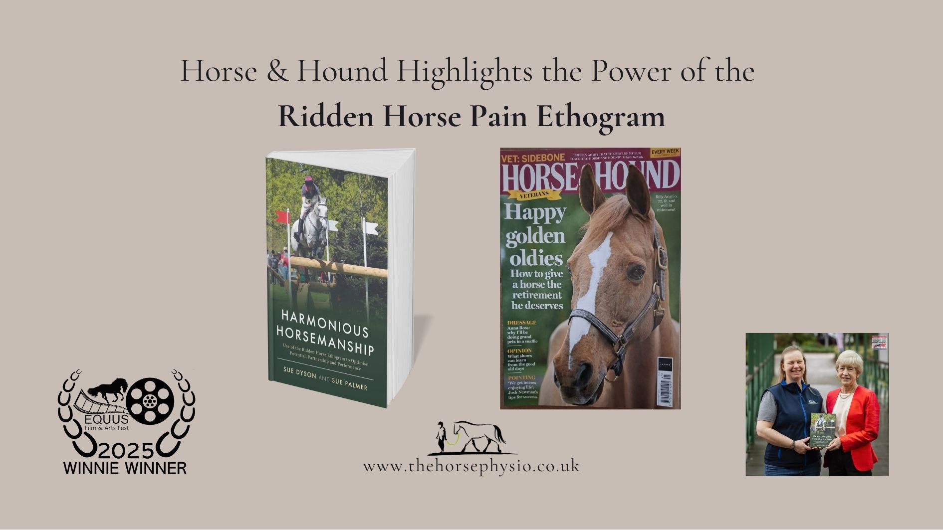 In the 6th November 2025 edition of Horse & Hound, within an article celebrating older horses, vet Ben Chilvers MRCVS described the Ridden Horse Pain Ethogram (RHpE) as ‘one of the most significant advances in the past decade… recognises 24 subtle behaviours linked to discomfort. “This tool allows much earlier recognition of discomfort, often before lameness is obvious”, says Ben’