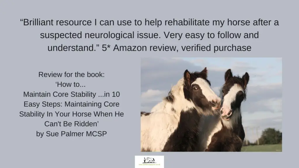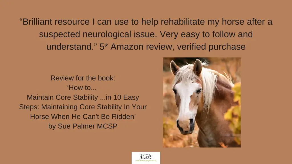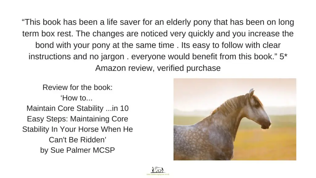 Taken from the book ‘How To Maintain Core Stability In 10 Easy Steps: Maintaining Core Stability In Your Horse When He Can’t Be Ridden’, available for just £1.99 on Kindle (or free if you have Kindle Unlimited).
